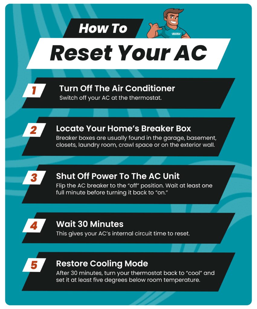 - Wait 30 minutes — This gives your AC’s internal circuit time to reset.